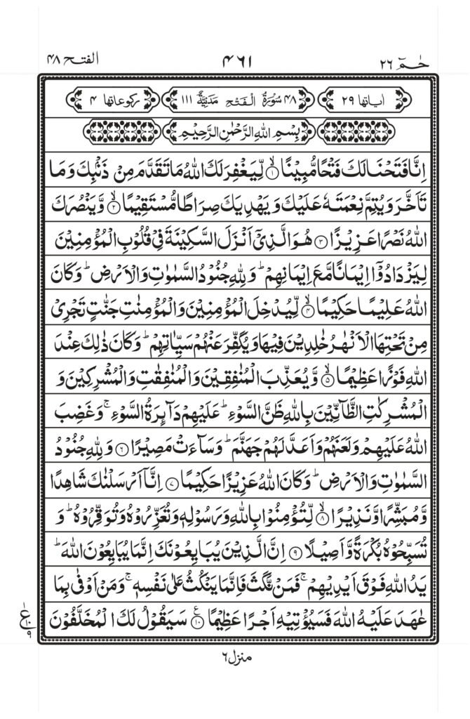 Surah Fath (سورة الفتح) is the 48th chapter of the Holy Quran, revealed in Madinah. It consists of 29 verses (ayat) and focuses on themes of victory, faith, and the rewards of patience.